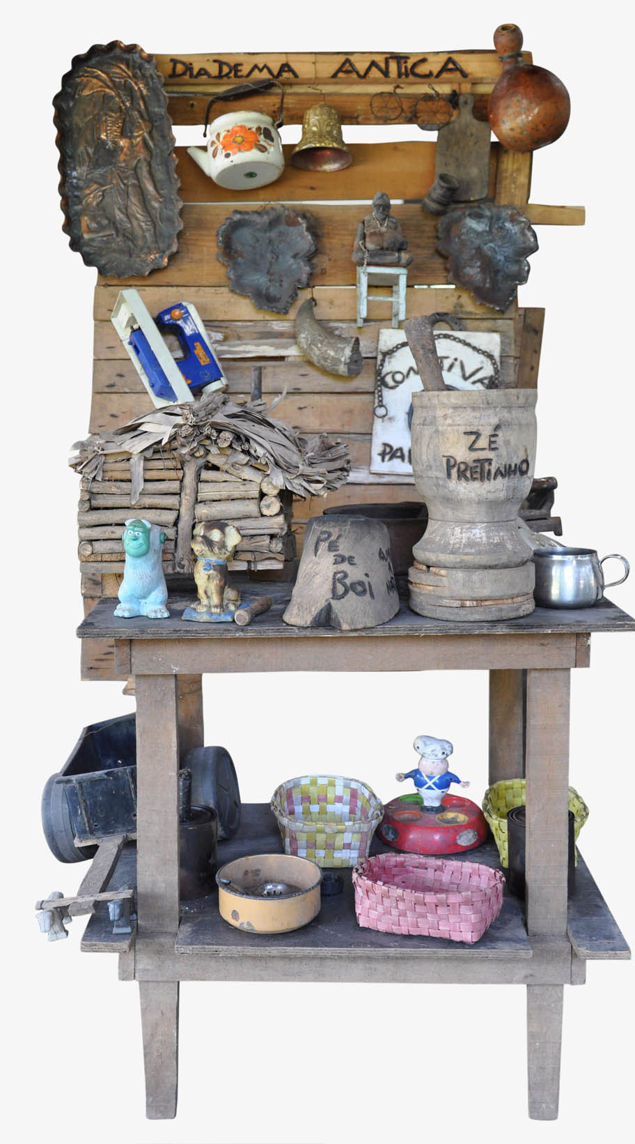 Zé Pretinho é artista do povo. Utilizando-se de material reciclável que tem a sua disposição por conta de um centro de coleta ao lado de onde trabalha, o artista permanentemente estabelece vínculos com a comunidade onde mora. Suas placas de madeira escritas com ferro quente dialogam com os vizinhos a a partir de frases particulares ou na sua associação com personagens da cultura de massa. A ação em torno do próprio artista favorece a exclusão da vunerabiliadade social.